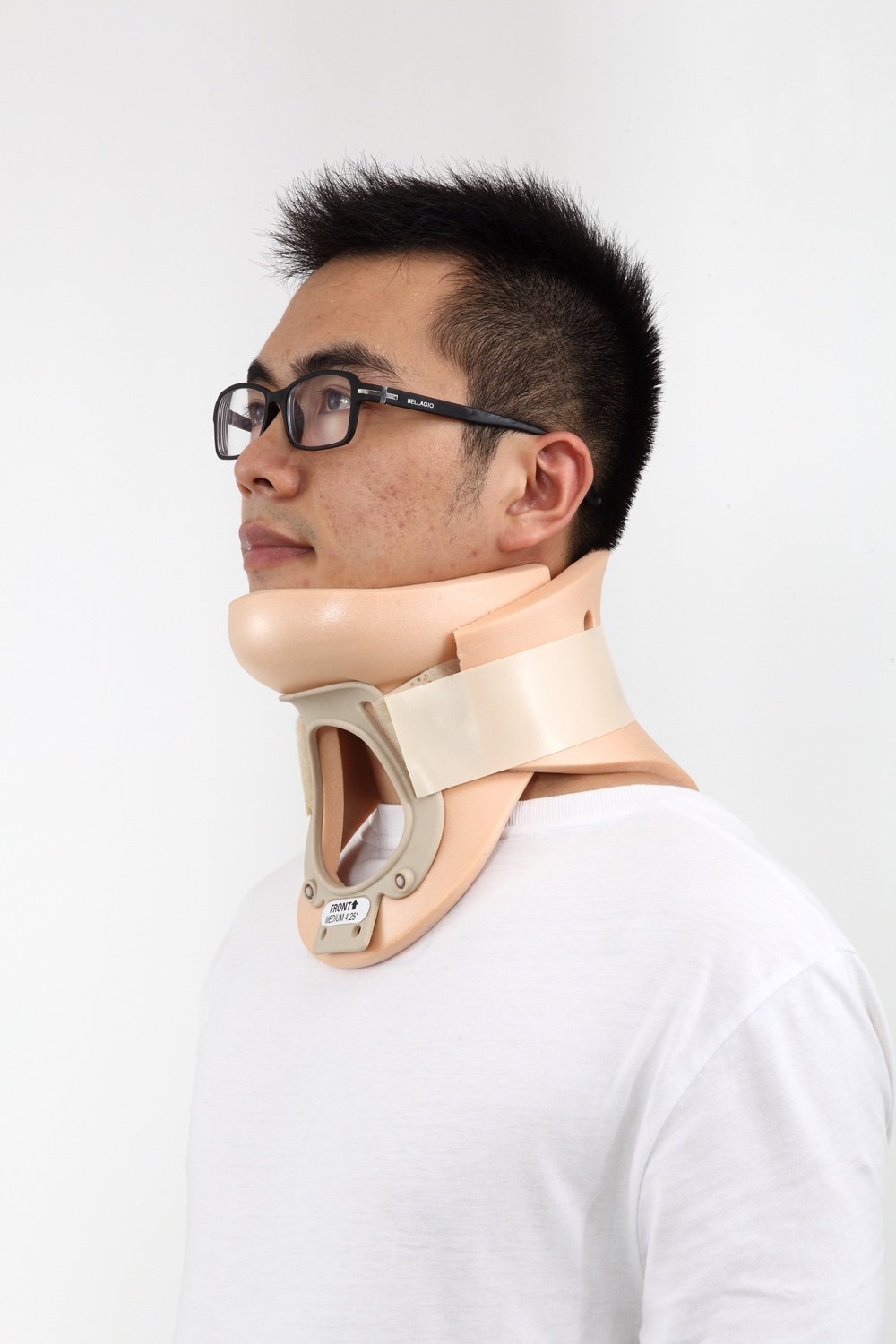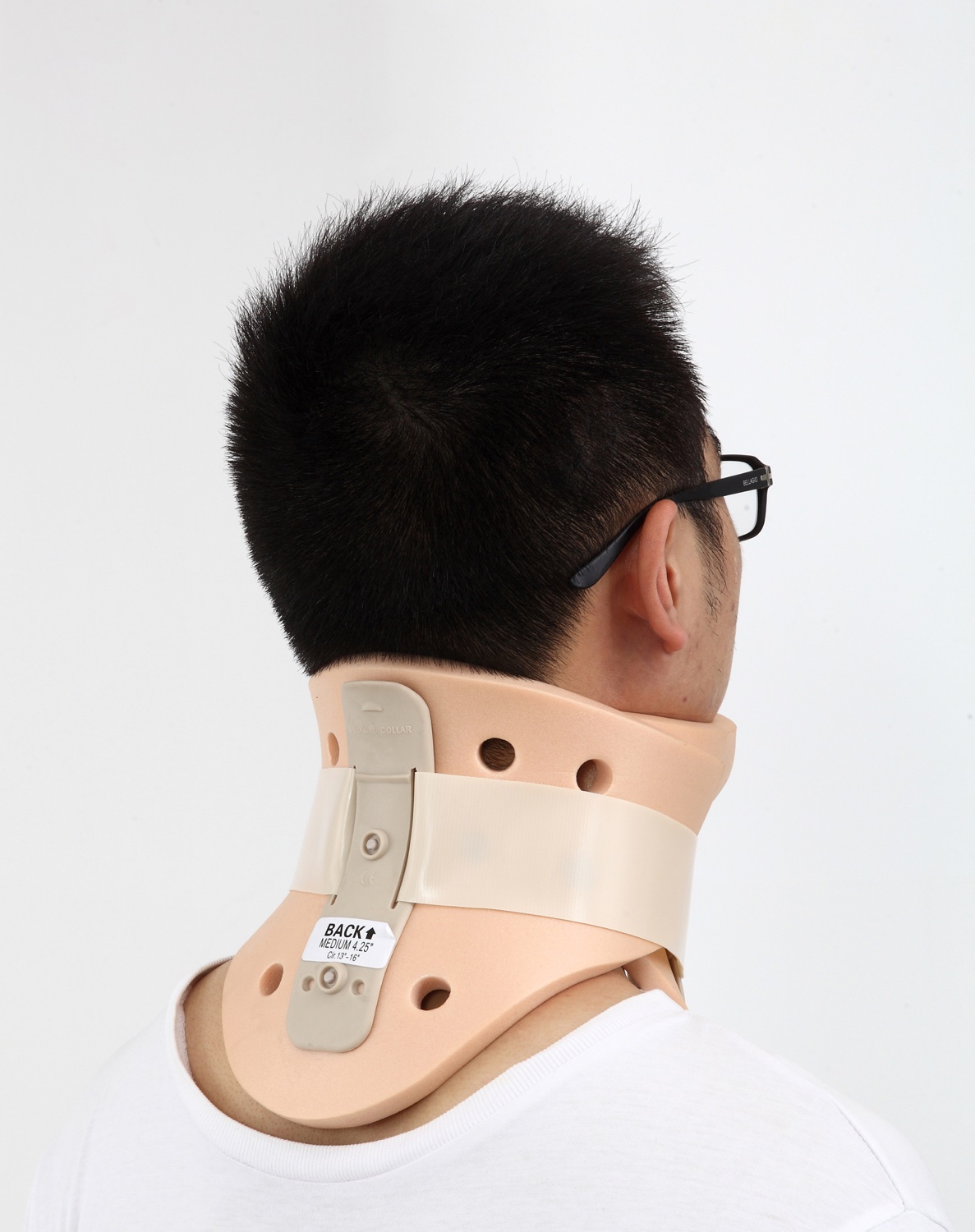 由进口优质塑料泡沫制成,对皮肤无刺激。根据人体肩颈的形状设计,前后有塑料片支撑,颈托四周有透气孔,适用于颈椎骨折固定、脱位复位固定等,有粘扣,可调节大小。